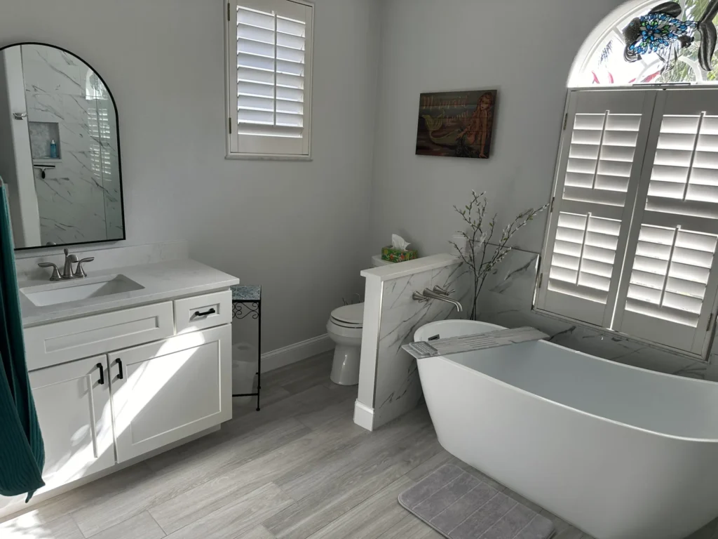 For this project, we completely transformed the bathroom into a stunning open-concept design, creating a space that feels larger, brighter, and more inviting. To achieve this: